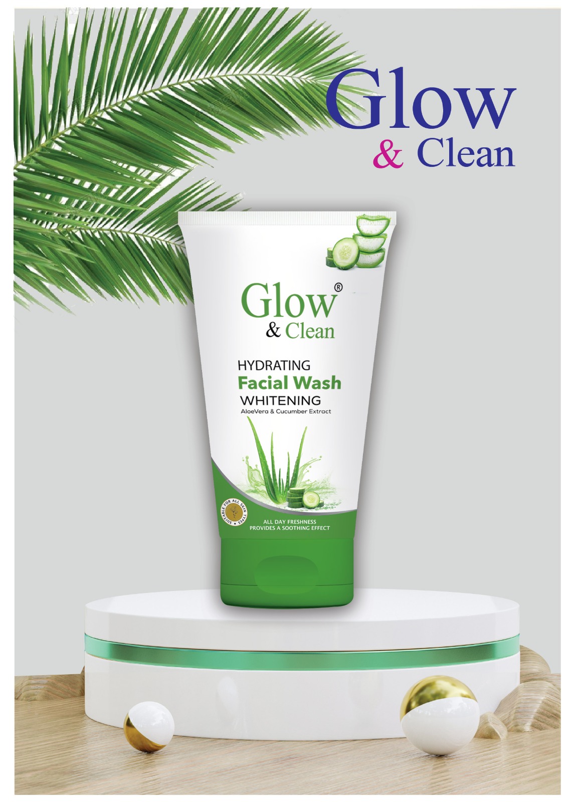 Wet your face, apply a small amount of Glow & Clean Cucumber Whitening Facewash, and gently massage in circular motions for 30–60 seconds. Rinse thoroughly with water. Use twice daily for refreshing brightening results.