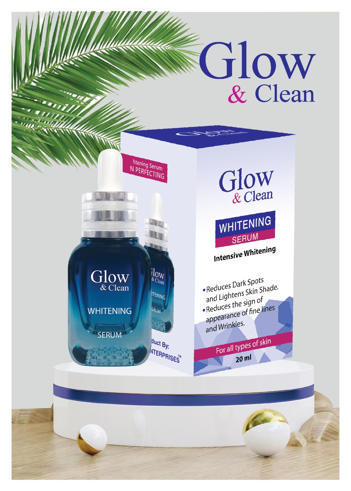 Glow & Clean Whitening Serum is an advanced brightening and skin–lightening formula designed to fade dark spots, even out skin tone, and boost natural radiance. Enriched with powerful whitening actives and antioxidants, it penetrates deeply to reduce pigmentation, dullness, and discoloration. With regular use, your skin appears smoother, brighter, and beautifully glowing.