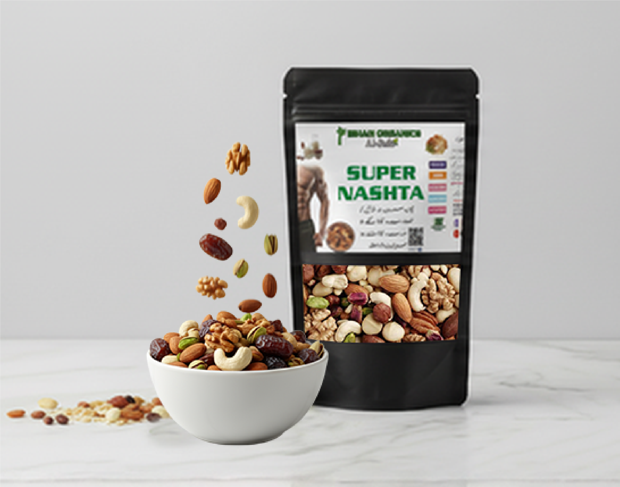 Kickstart your day with Super Nashta, a powerful blend of grains, seeds, nuts, and natural sweeteners designed to fuel your body with lasting energy. Rich in fiber, protein, and essential nutrients, this wholesome breakfast mix supports digestion, boosts stamina, and keeps you full for hours. Ready in minutes—ideal for busy mornings, healthy snacking, or a nourishing evening meal.